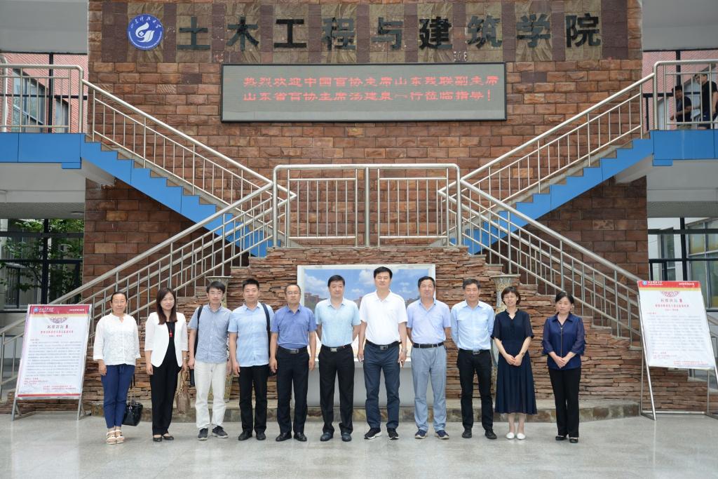 7月8日上午,中国盲协副主席、山东省残联副主席汤建泉,在山东旭天康体科技有限公司总经理王克旭的陪同下,莅临土建学院参加无障碍建设座谈会。土建学院院长王崇革,建筑系主任许剑峰和建筑系、城乡规划系的部分教师参加了座谈会。会议由王崇革主持。