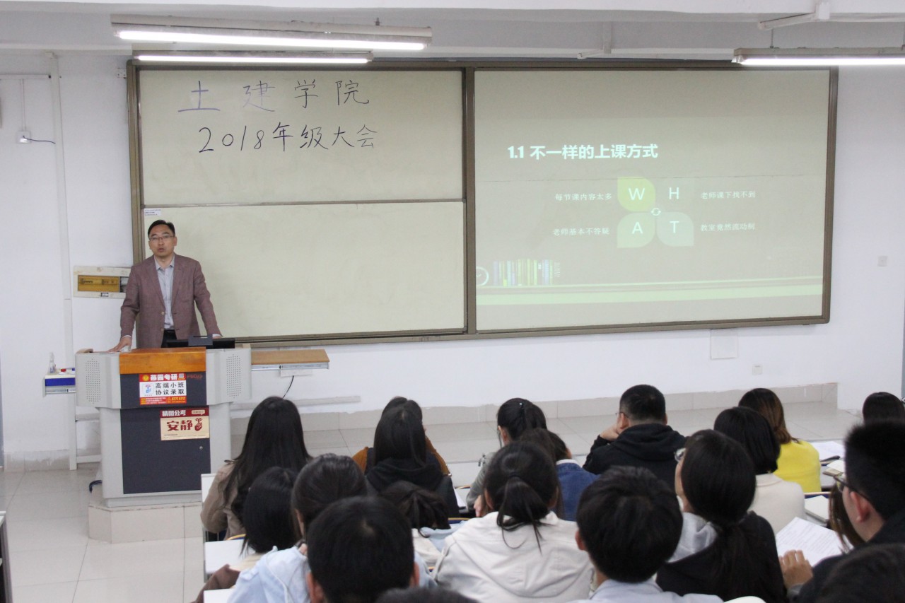 为引导2018级学生更好地适应大学生活,树立正确的世界观、人生观、价值观,土建学院于10月17日下午在S1实验楼召开2018级全年级大会。土建学院党委副书记、副院长郝亮,团委书记于娜,及团委全体专、兼职辅导员参加大会,会议由团委张翌主持。