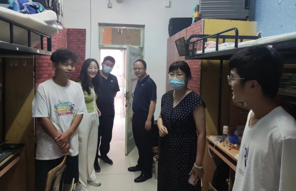 学生返校后,学院党委副书记高静带领全体辅导员深入学生宿舍,走访看望返校学生,通过与学生谈心谈话,了解学生假期情况以及返校思想动态,为同学们上好开学“安全”第一课。了解当地疫情防控情况,向同学们普及疫情防控知识,帮助同学们排查宿舍安全隐患,提醒同学们注意宿舍安全用电、防范诈骗,引导同学们养成良好的生活习惯,营造积极向上的宿舍文化氛围。