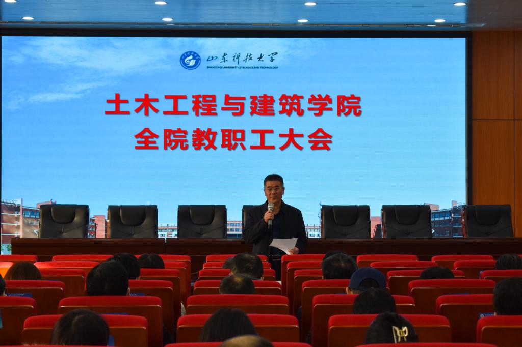 2月19日下午,土建学院在J15-136报告厅召开全院教职工大会,会议由学院党委书记宋西路主持,全院教职工参加会议。