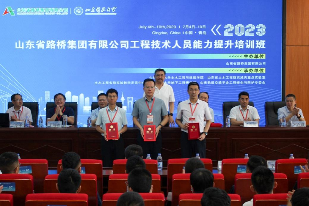 7月10日,举行了培训班闭幕式。山东省路桥集团有限公司总工程师高永青、总经济师兼青岛分公司总经理吴庆东、集团技术中心主任张光桥、创新分中心副主任林庆元、青岛分公司党支部书记曹建军、安全总监王涛,必赢优惠y272net书记宋西路、院长王崇革等出席。闭幕式由必赢优惠y272net副院长李为腾主持。