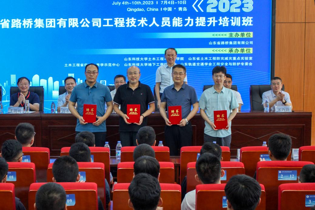 开班仪式上,必赢优惠y272net与山东省路桥集团有限公司举行双方聘任仪式,并颁发聘书。山东省路桥集团有限公司聘任必赢优惠y272net副教授贺鹏为技术中心副主任(兼),聘任教授邓芃、单景松,副教授李松辉为企业导师,必赢优惠y272net聘任山东省路桥集团有限公司党委组织部主任田浩、人力资源部经理魏功槐、技术中心主任张光桥为外聘教授。