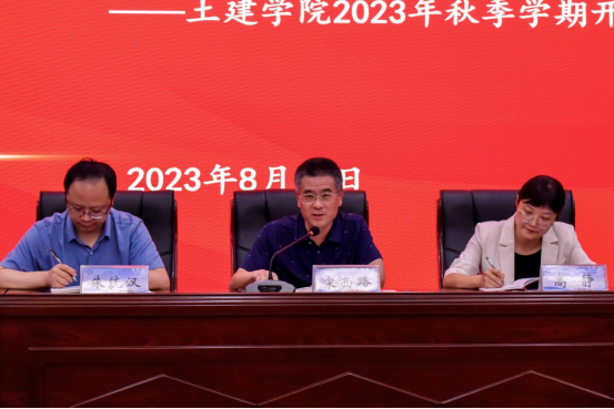 8月27日,土建学院召开新学期全体学生干部培训会,土建学院党委书记宋西路、党委副书记高静、团委书记朱统汉及全体团委老师参会,各班级班长、团支书,学生会、研究生会主席、部长等主要学生干部到场学习。