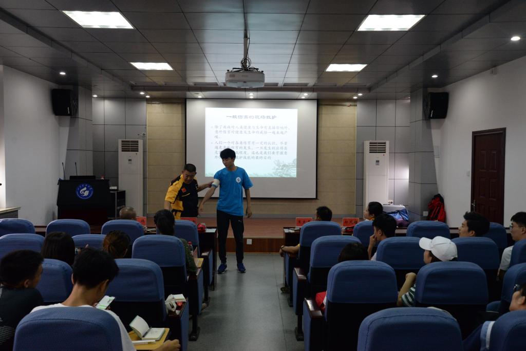 为做好暑期支教安全保障工作,提高志愿者紧急救护能力,7月13日,土建学院燃梦公益在土建楼219举办了急救培训会。本次培训会邀请到“青岛西海岸新区红十字汽车公益联盟”志愿者管培云、王全国、张伟、王大勇、郝凤瑾等讲解,燃梦公益全体志愿者参加了本次培训。