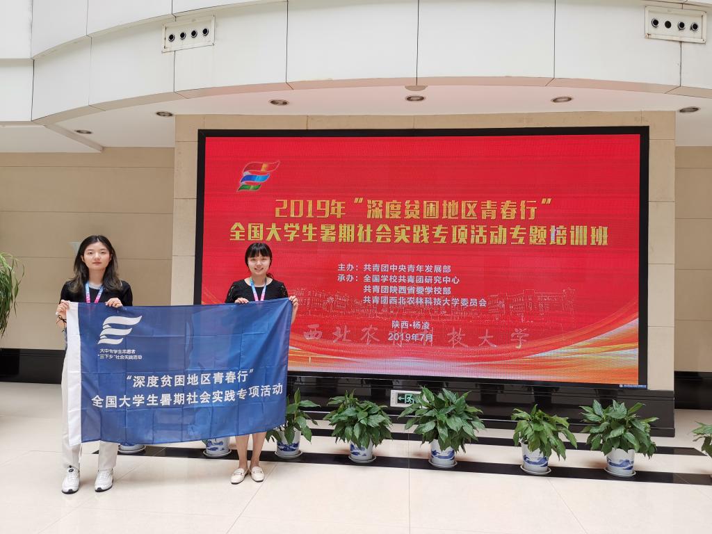 7月7日至10日,2019年“深度贫困地区青春行”全国大学生暑期社会实践专项活动专题培训班在西北农林科技大学举办,必赢优惠y272net燃梦公益暑期社会实践团队师生代表尚军、杨冰玉参会。本次培训由共青团中央青年发展部主办,由全国学校共青团研究中心、共青团陕西省委学校部与共青团西北农林科技大学委员会承办。会议邀请了国务院扶贫办、中央和国家机关工委、团中央有关负责同志进行专题报告,旨在帮助和引导实践团队师生提升思想认识、明确任务要求、强化安全意识、提高实践技能,确保社会实践专项活动取得实效。