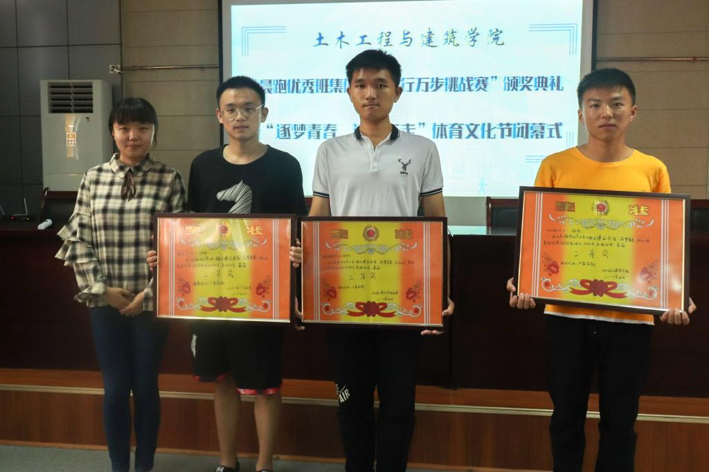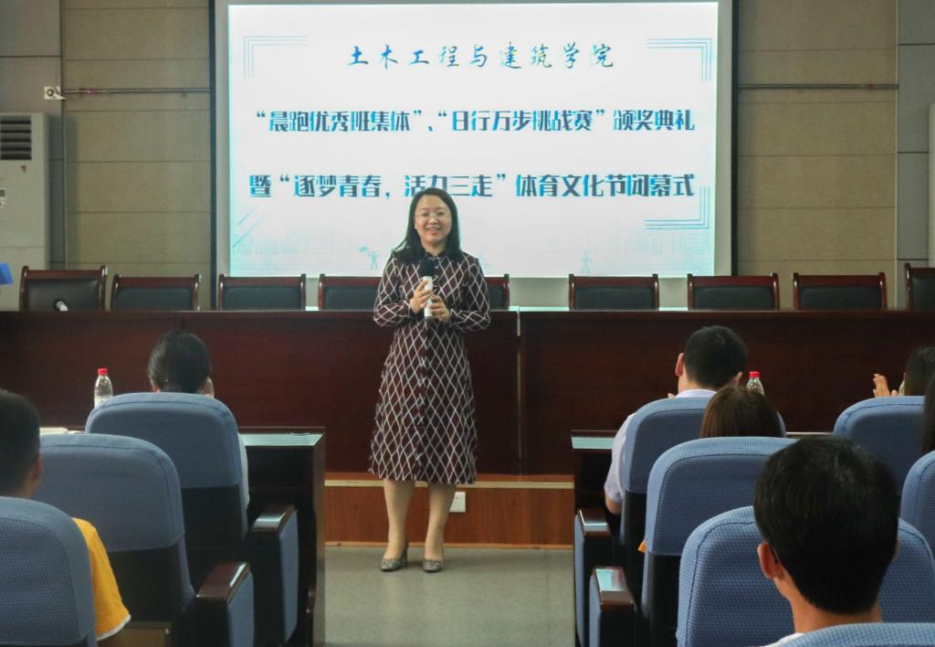 6月17日下午,土建学院于J15-219会议室举办了“晨跑优秀班集体”、“日行万步挑战赛”颁奖典礼暨“逐梦青春,活力三走”体育文化节闭幕仪式。学院团委书记于娜及全体专兼职辅导员出席了本次活动。