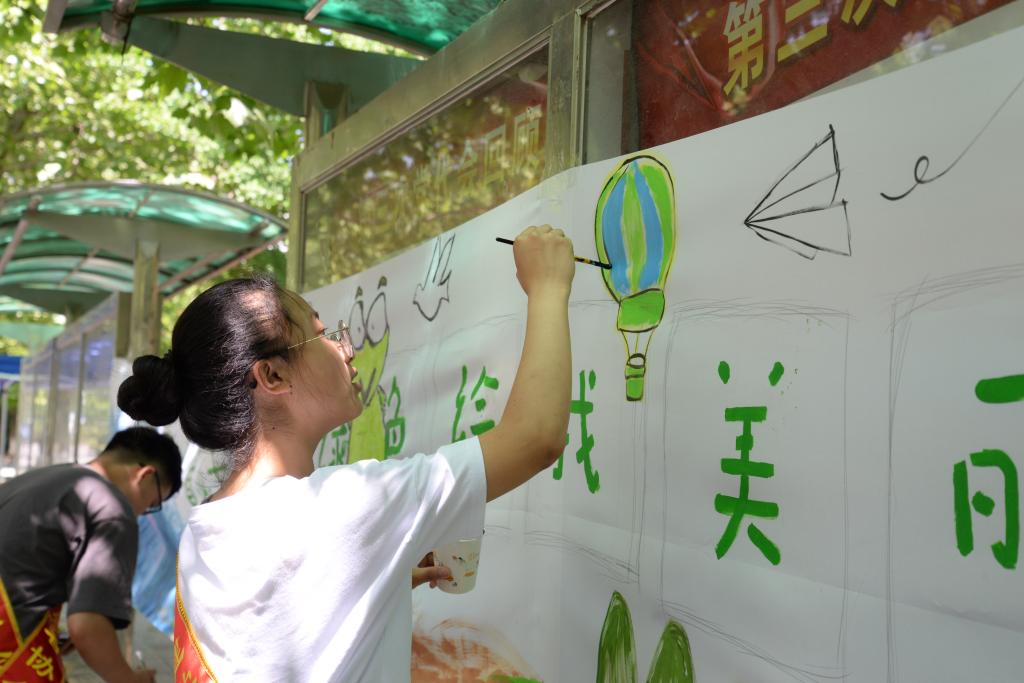 生机盎然,鸟鸣声声,美丽的山科沐浴在暖暖的阳光下。恰逢世界环境日,土建学院青年志愿者协会在A餐南门举办“绿色梦想家”彩绘活动,邀请同学们一起着手点滴绿色,绘我美丽山科。