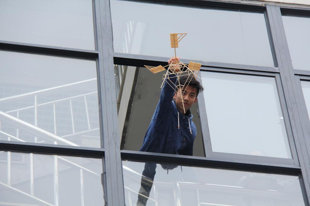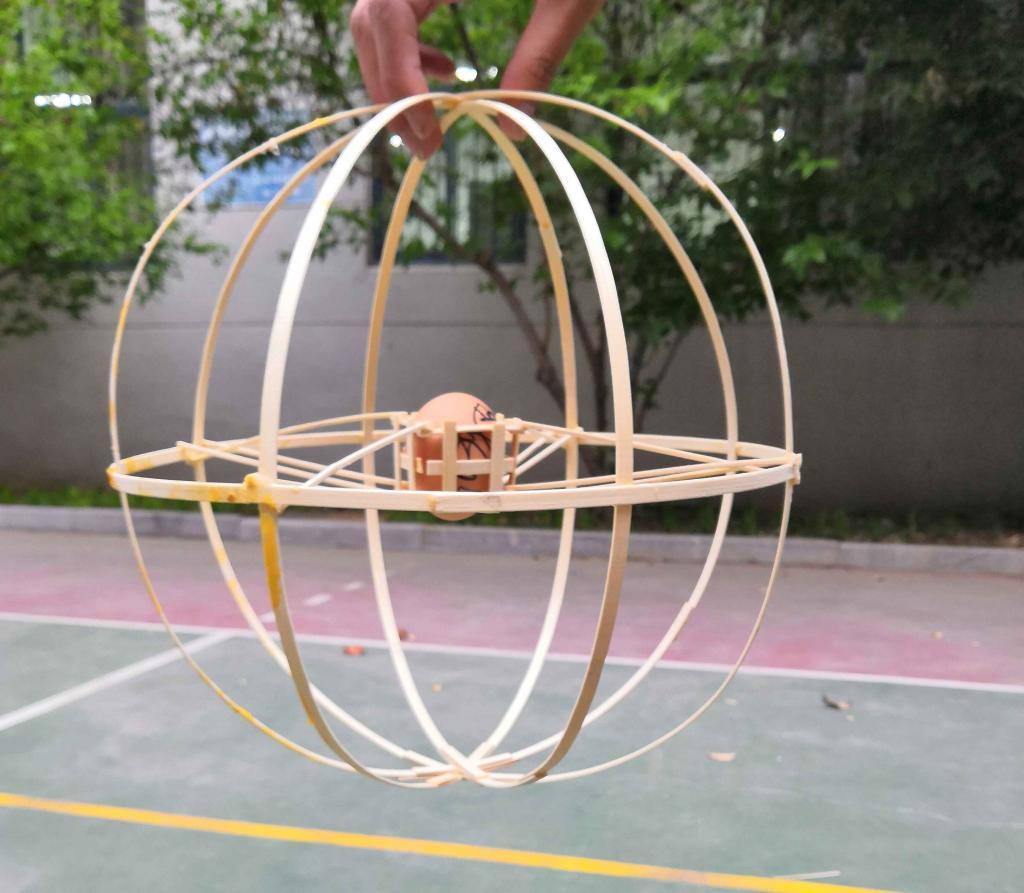 比赛最大的吸引力来自新颖有趣的赛题——高空护蛋。该赛题要求各参赛队根据主办方提供的竹条、牙签、胶水、鸡蛋等材料制作一个护蛋结构(要求鸡蛋可视度在40%以上,结构类型不限),以鸡蛋从15米高空落下后的完好程度和结构的稳定性为评分标准。比赛主要分为三个阶段:4月24日18:00-22:00,土建学院科技学习部同学为270个参赛队发放了比赛材料;25-26日,各参赛队自由制作模型,他们不分昼夜地设计和制作模型、进行模拟实验,不断进行修改和完善;27日为模型检测。模型检测当天,参赛团队签到后,工作人员对结构进行称重(要求模型不得超过220g),随后评委从外观的美感程度、结构的稳定程度进行打分,打分完毕,选手自行在15米左右的高空将模型扔下,最后评委老师再次根据鸡蛋和模型破损程度打分。