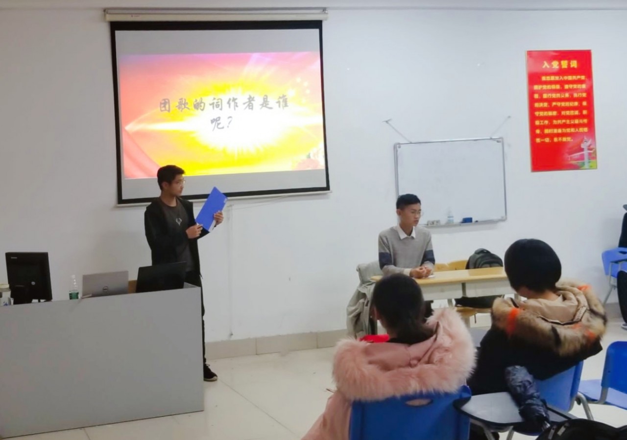 为深入学习贯彻习近平新时代中国特色社会主义思想和党的十九大精神,认真落实团十八大关于全面从严治团的部署要求,提高共青团组织建设科学化水平,进一步强化团员意识,根据团省委和校团委工作安排,近日,必赢优惠y272net团委在全院范围内组织各团支部集中开展了以团旗、团徽、团歌等共青团标志规范使用为主要内容的主题团日活动,对《中国共产主义青年团团旗、团徽、团歌制作使用管理规定》(中青发〔2018〕12号)进行深入学习。