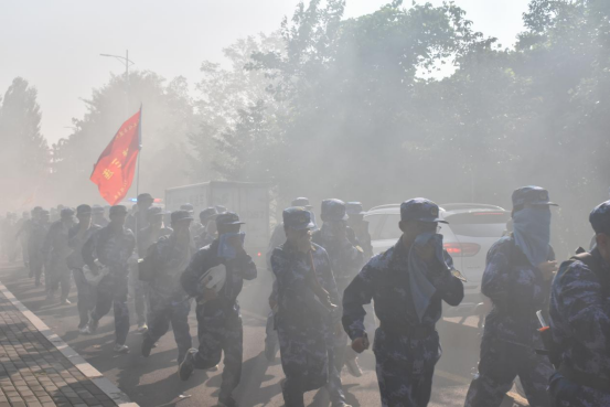 行军途中,军训连队按照序列,分成三路纵队,以整齐的步伐向前迈进。各连由教官带队依次进行穿越烟区、跨越障碍、匍匐前进、百米奔袭等军事技能训练项目。学生们迈着整齐的步伐齐唱《过硬的连队》。军歌嘹亮、步伐矫健、精神抖擞,充分展现了土建学子团结协作、奋发向上的精神风貌。全体参训学生服从命令、听从指挥、互相帮扶、相互鼓励,经过坚持不懈的跋涉,同学们圆满完成此次拉练,截至10时,土建学院全体参训学生全部安全返回风雨操场。