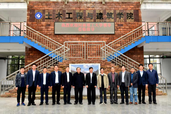 4月30日,河南理工大学校长杨小林、科学技术处处长李振华、土木工程学院党委书记刘希亮等一行在校长姚庆国、科技处处长陈连军、土建学院院长王崇革等陪同下,到土建学院参观交流。